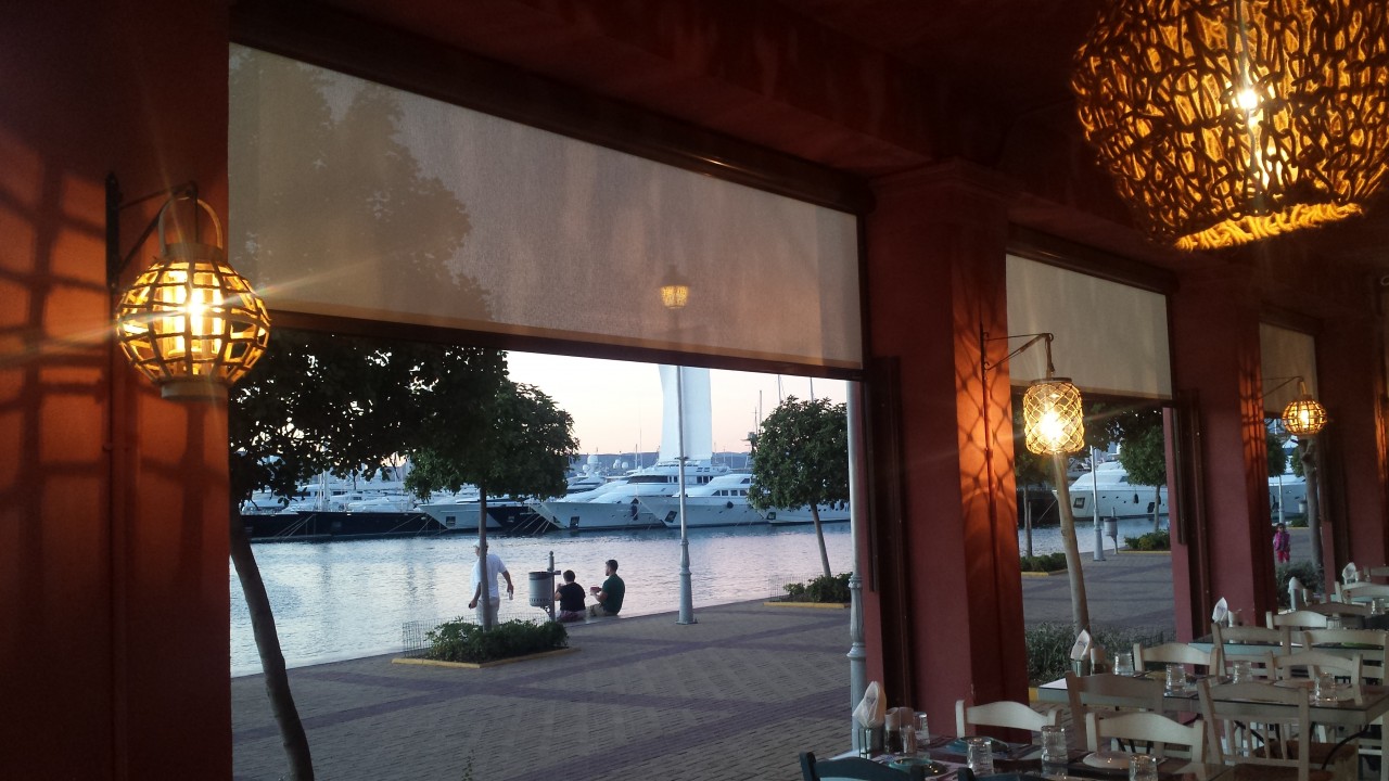 Natural fabric roller blinds @ Matsuhisa, Four Seasons, Vouliagmeni