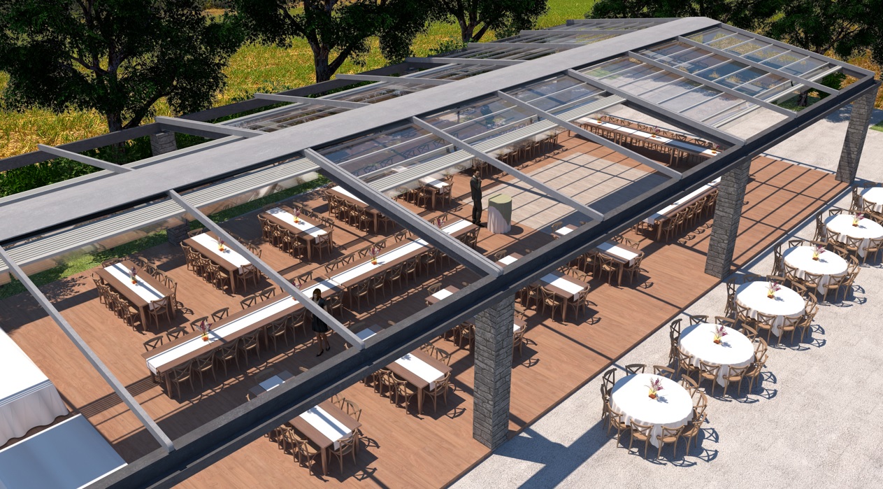 Motorised-roof pergola with side closings @ Bistrot 151, Thessaloniki